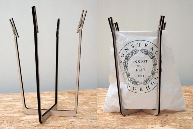 Simple et légère, cette poubelle « Clip trashcan » permet facilement de recycler vos sacs plastique!