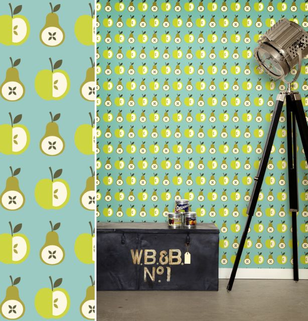 Des pommes , des poires et du papier peint! par le designer Ian Dutton pour Muffin and mani