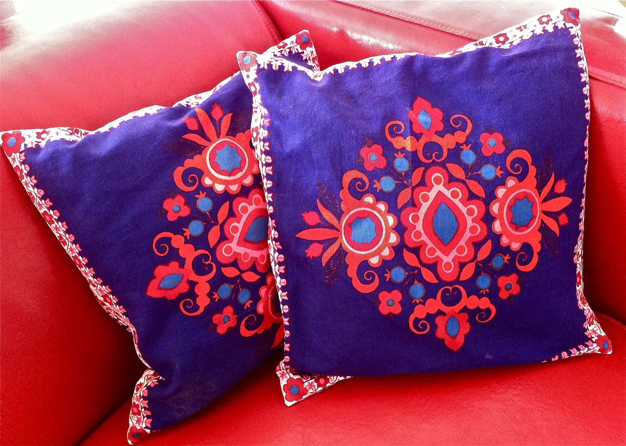 Ces housses de coussins « vintage » viennent de ma belle-famille, elles allaient partir dans des cartons et je les ai sauvé de l’oubli! j’aime ce graphisme « folklorico-seventy-bohème »!