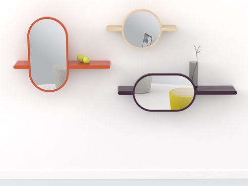 « Mirette »- 2011- collection de 3 tablettes/miroirs en bois massif naturel ou laqué