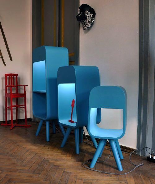 Famille de petits meubles rétro-éclairés, par le studio ukrainien Decorkuznetsov composé de Valeriy Kurnetsov et Katerina Kurnetspva.